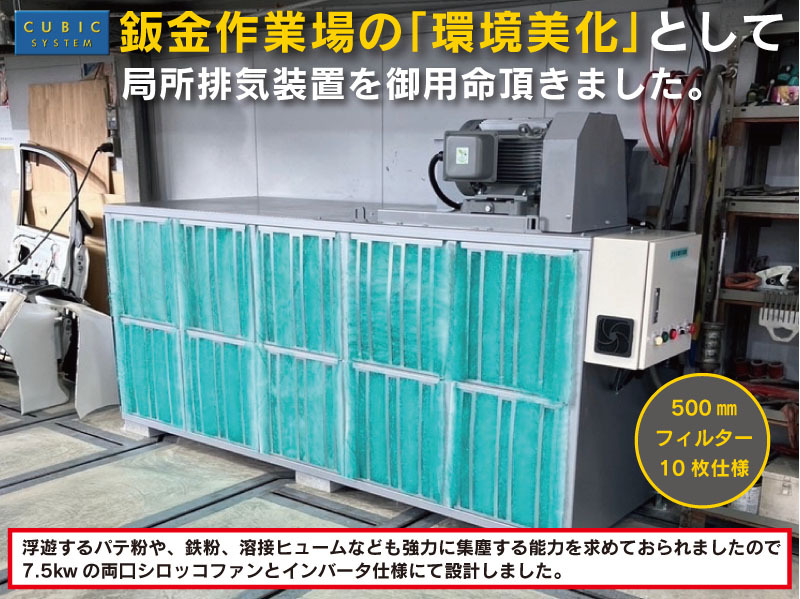 鈑金作業場の「環境美化」として、局所排気装置を御用命頂きました。