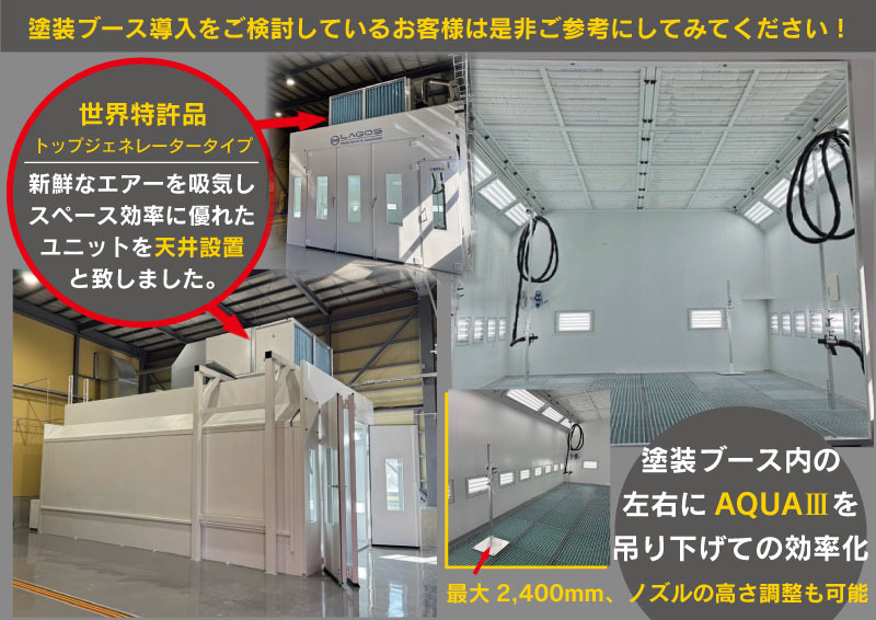 - 3灯式ヒーターをカーボンランプでご提案。 塗装ブースは、新鮮なエアーを吸気しスペース効率に優れたユニット天井設置と致しました。