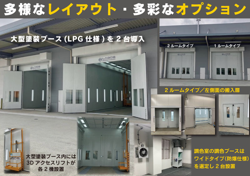 弊社「大型塗装ブース」ならではの多様なレイアウト・多彩なオプション。