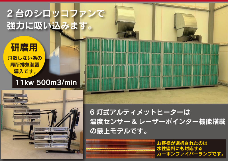 局所排気装置と6灯式アルティメットヒーターを導入いただきました。