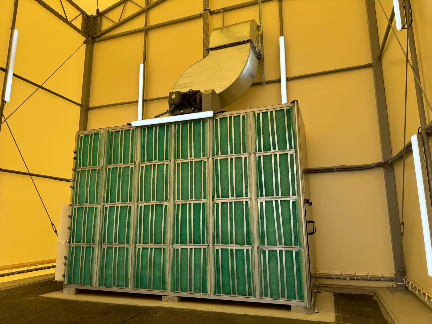 - 風速申請に対応するため 11kW・500㎥/minのシロッコファンを採用し、プレロールフィルターも設置。