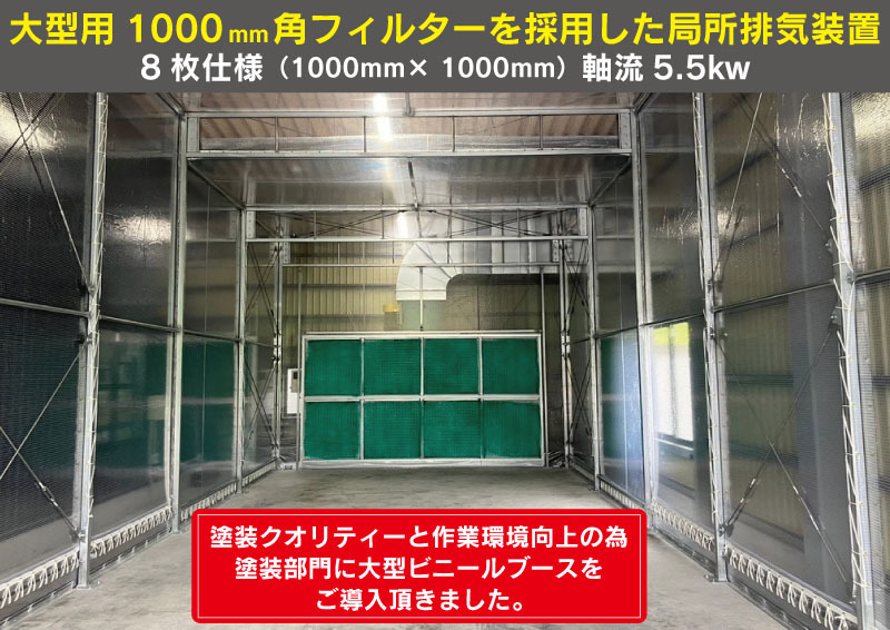 この度、塗装クオリティーと作業環境向上のため、塗装部門に大型ビニールブースを導入頂きました。