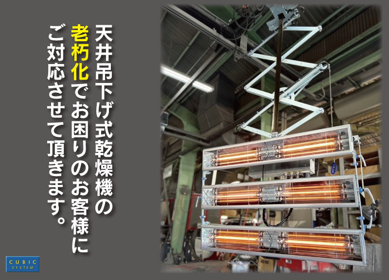 日本各地、天井吊下げ式乾燥機の老朽化でお困りのお客様もいらっしゃるかと思います。