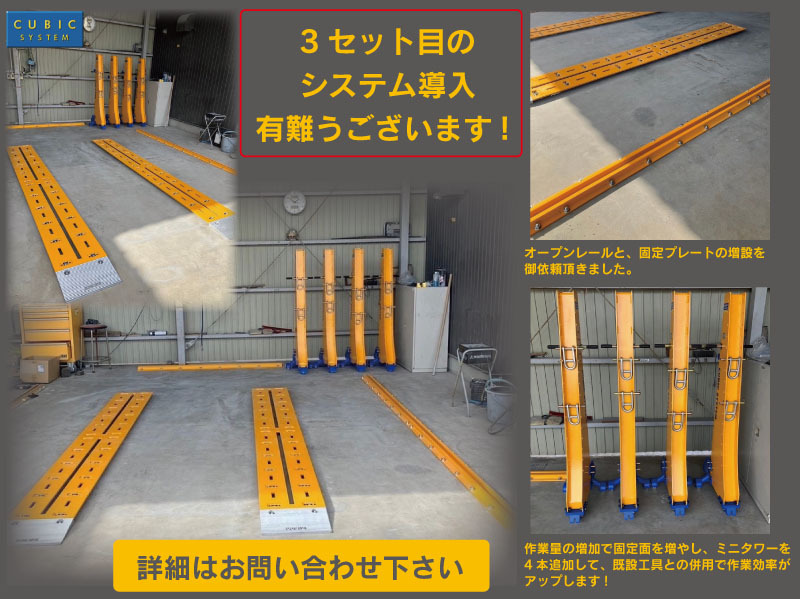 • 作業量の増加で、固定面を増やし、ミニタワーを4本追加。既設工具との併用で作業効率が格段にアップします。