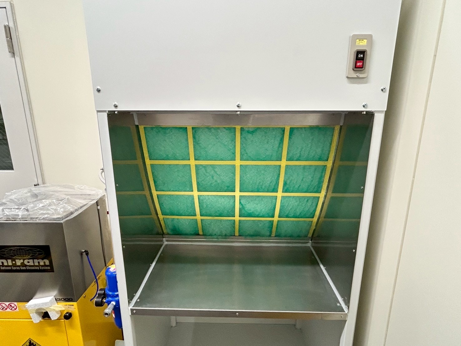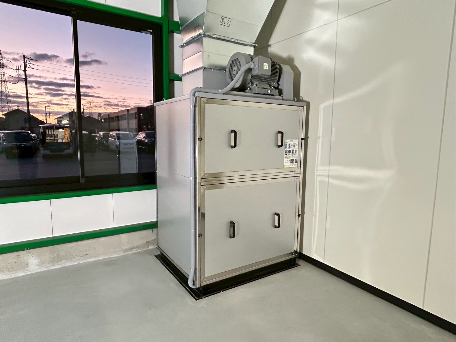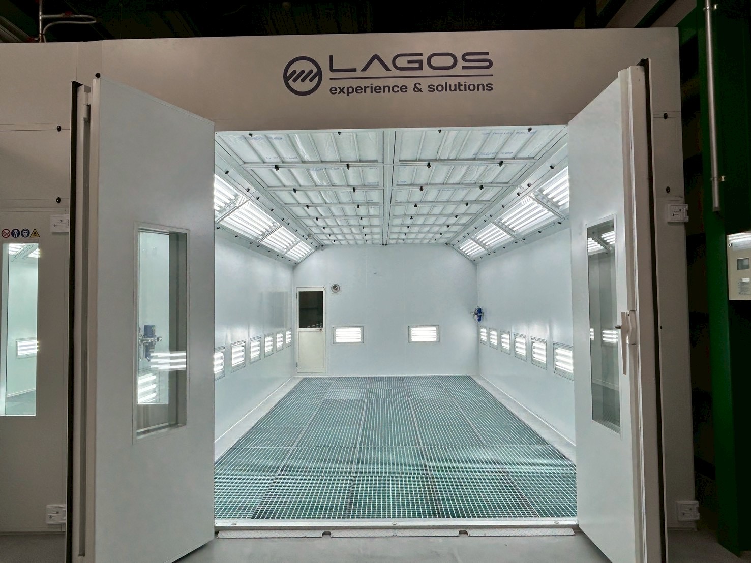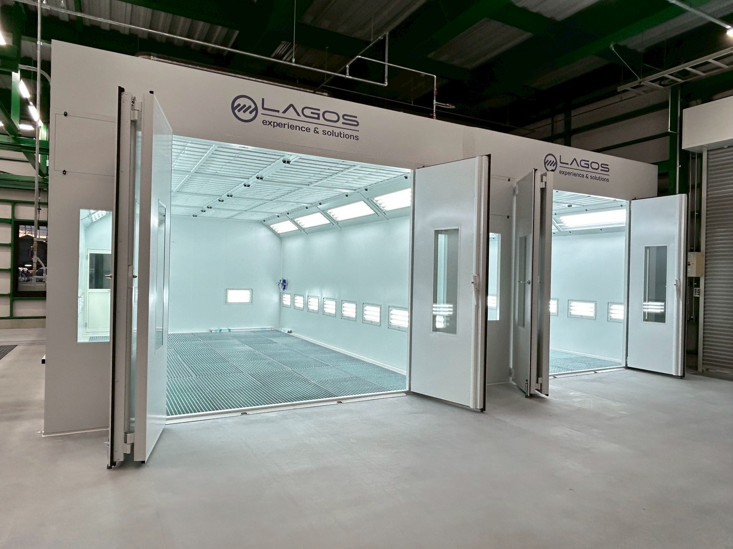修正装置、床集塵装置、LED照明付き温度調整機能付き吊り下げヒーター、吸気装置天井設置スポットクーラー装備の塗装ブースを2連、検車装置など工場全体でご提案・設置致しました。