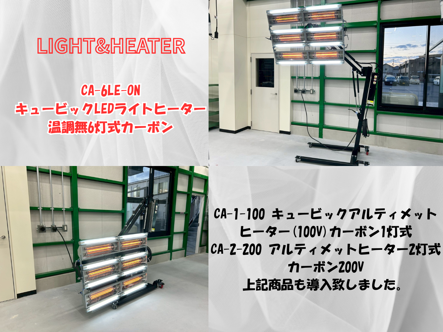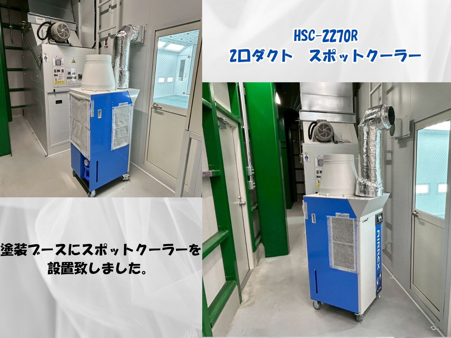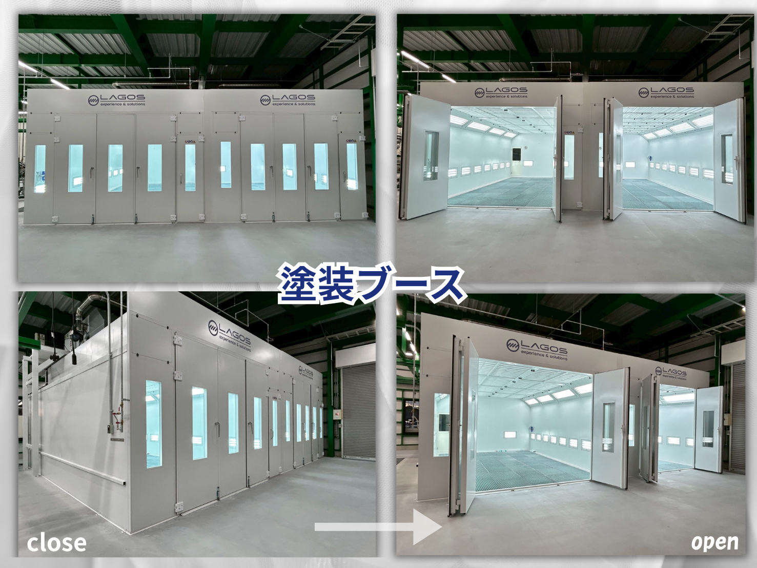 修正装置、床集塵装置、LED照明付き温度調整機能付き吊り下げヒーター、吸気装置天井設置スポットクーラー装備の塗装ブースを2連、検車装置など工場全体でご提案・設置致しました。