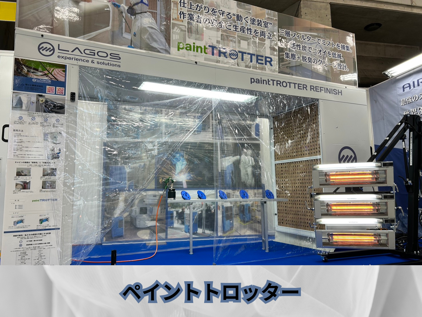 会期中は、①エアー式3Dアクセスリフトのデモ実演 ②クイック塗装ブース、ペイントトロッターの構造説明 ③作業効率向上・安全性向上に関するご提案 ④今年より熱中症対策の一環、新提案として「スポットクーラー」 など多くのお客様に御覧いただき、大変盛況のうちに終了いたしました。また、展示製品に関して多数のお問い合わせやご相談を頂戴し、社員一同心より御礼申し上げます。当日ご案内しきれなかった内容や、デモの追加希望、御見積依頼などのございましたら、お気軽にお問い合わせください。