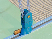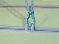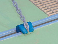 レールに引っかけて、チェーンを簡単に固定することができます。打設用オープンレールにも使用できます。