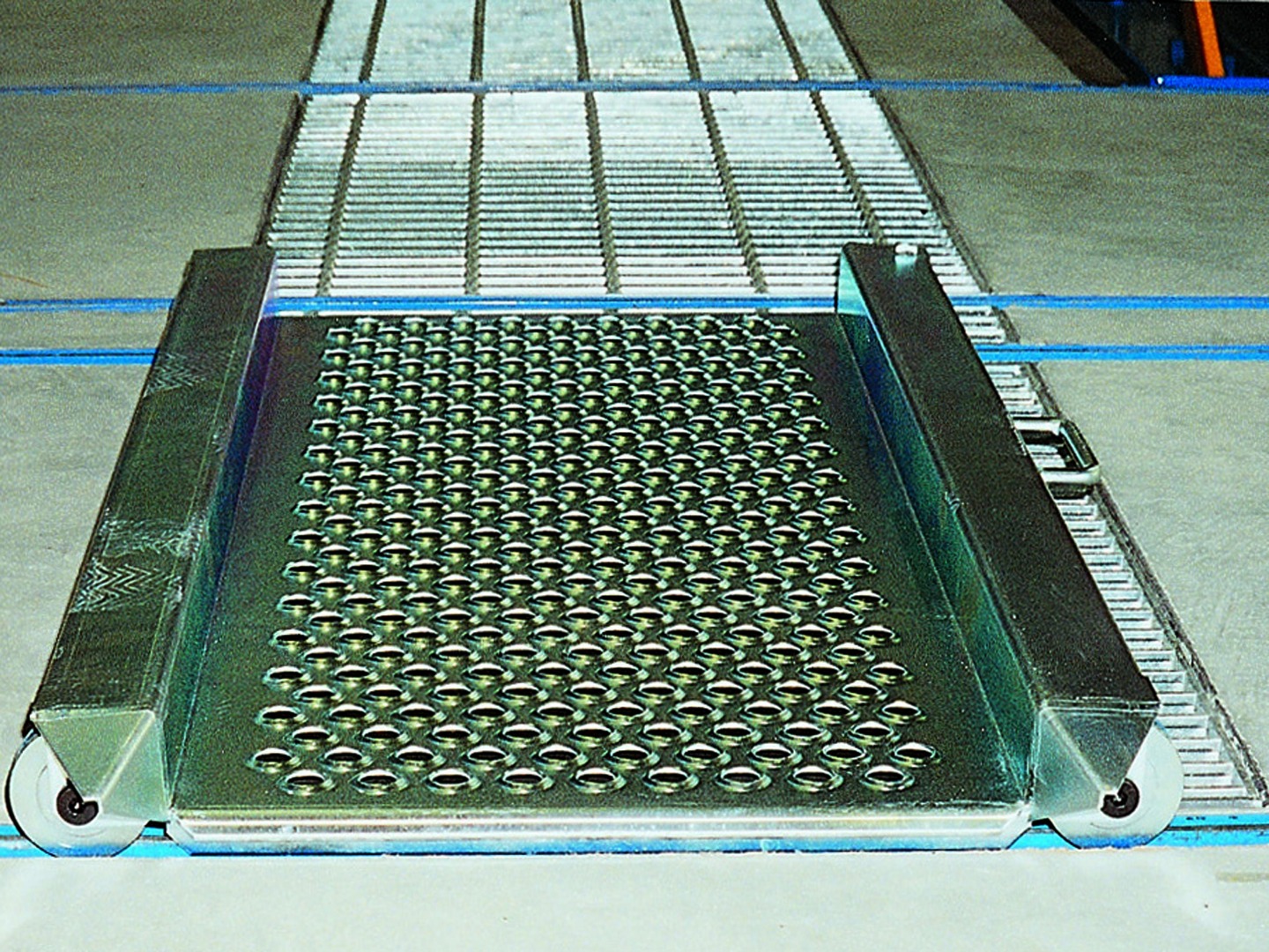 作業スペースに埋設したレールの上で車体を自由に横移動するために開発された商品です。