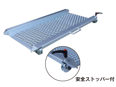 • 数秒でスムーズな移動ができるためにトラバーサー専用車輪は、大径車輪を採用、移動後は安全ストッパーで車輪をロック。より作業者のフィーリングを重視した設計です。