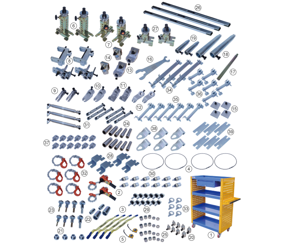 | ㉓ CS-SUJ-23 | アタッチメント(4種類)×2/10φ・12φ・14φ・16φ(BOX付)総重量5.5kg 付属ボルト10φ・12φ(PL25)14φ・15φ(PL5) ※各ボルト100mm・120mm・140mm×2本(計24本)  |